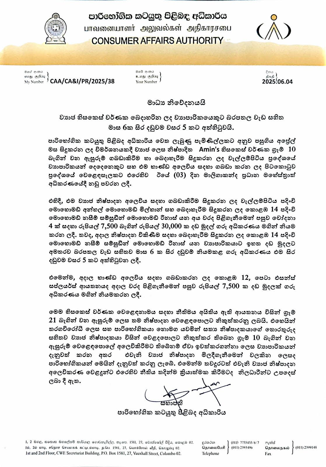 Businessman Penalized by Maligakanda Magistrate Court for Counterfeit Hair Dye Distribution